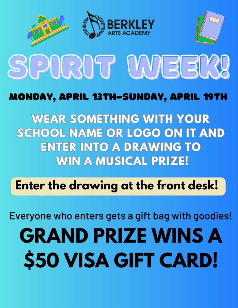 Finally, I want to make sure you mark your calendars for our upcoming Spirit Week, running from Monday, April 13th through Sunday, April 19th!